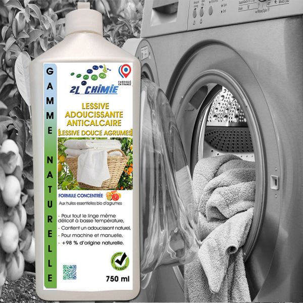 PRÉSENTATION Excellente efficacité même en eau très dure et à basse température. Produit concentré : 1 litre pour 16 lessives de 5 kgs. Contient un adoucissant (huiles) qui facilite le séchage et le repassage.